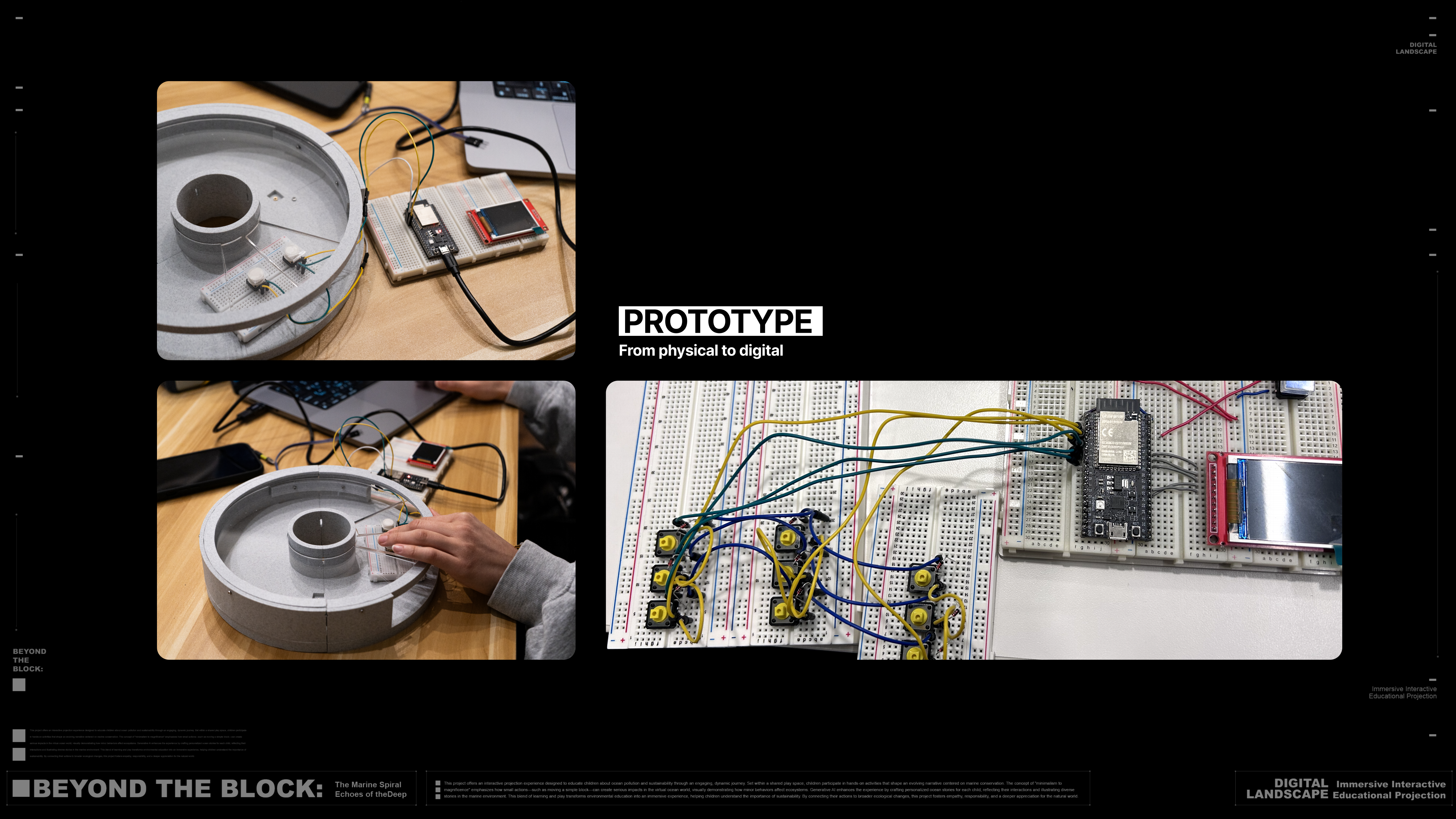 This is an immersive interactive experience design that combines artificial intelligence with environmental education, aiming to engage children and families in exploring the importance of ocean conservation and sustainability through play. In a shared immersive space, children and parents can move physical blocks together, generating virtual ocean assets such as coral, fish, and debris in real-time, visually demonstrating how small actions can impact ecosystems.